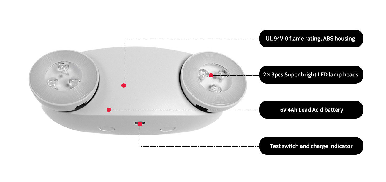 Hjem / Produkt / Nødlys / Dobbelthode nødlys / JLEU6 UL/CUL 600LM HIGH OUTPUT DUAL HOVE Nødlys