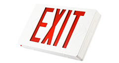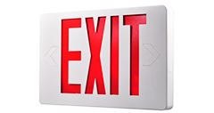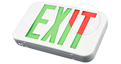 En venstre og høyre pil kan bli slått ut fra frontplaten for å peke på utgangsretningen. En universell monteringsbrakett gir enkel montering fra toppen eller sidene. Dette utgangsskiltet er forhåndsmontert og sendt enkelt sidet med en ekstra utgangsplate som er inkludert i boksen for valgfri manuell montering.