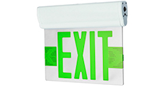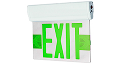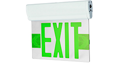 *Illumination - Denne Edge Lit Exit Sign Series gir en LEV -belysning med lang levetid. Enheten er konstruert med et grønt LED -kort med høyt utgang.  Energiforbruk er vurdert til mindre enn 4 watt for kun AC -modellenheter. Batteribackup -enhetens energiforbruk er vurdert til under 1 watt.