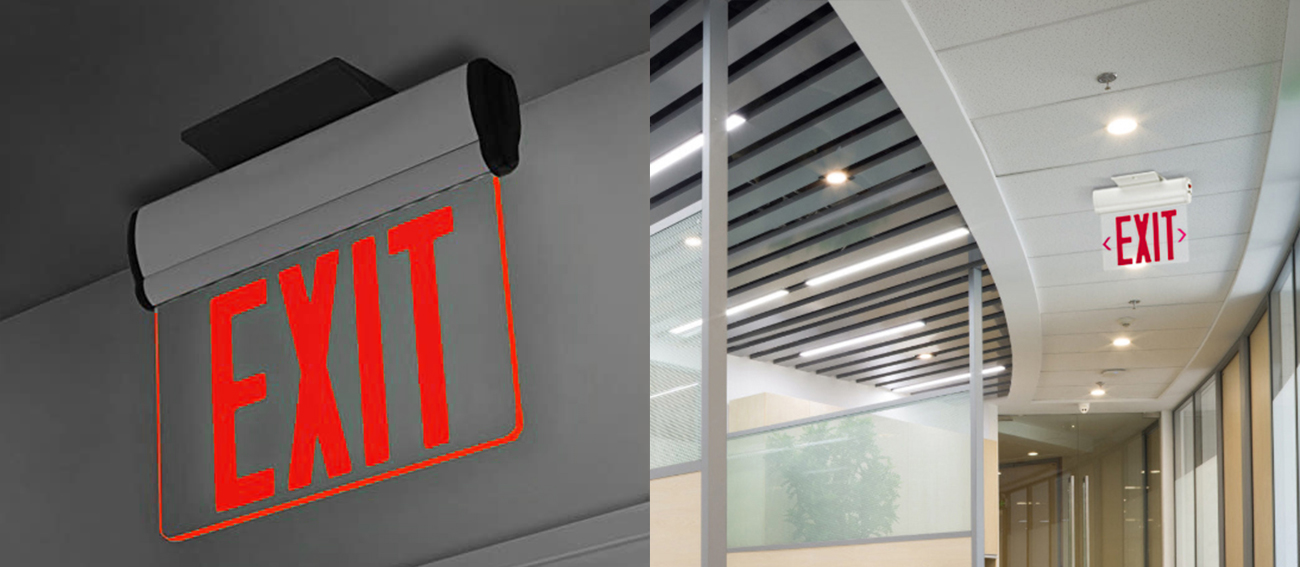 *Illumination - Denne Edge Lit Exit Sign Series gir en LEV -belysning med lang levetid. Enheten er konstruert med et rødt LED -kort med rødt utgang.  Energiforbruk er vurdert til mindre enn 4 watt for kun AC -modellenheter. Batteribackup -enhetens energiforbruk er vurdert til under 1 watt.