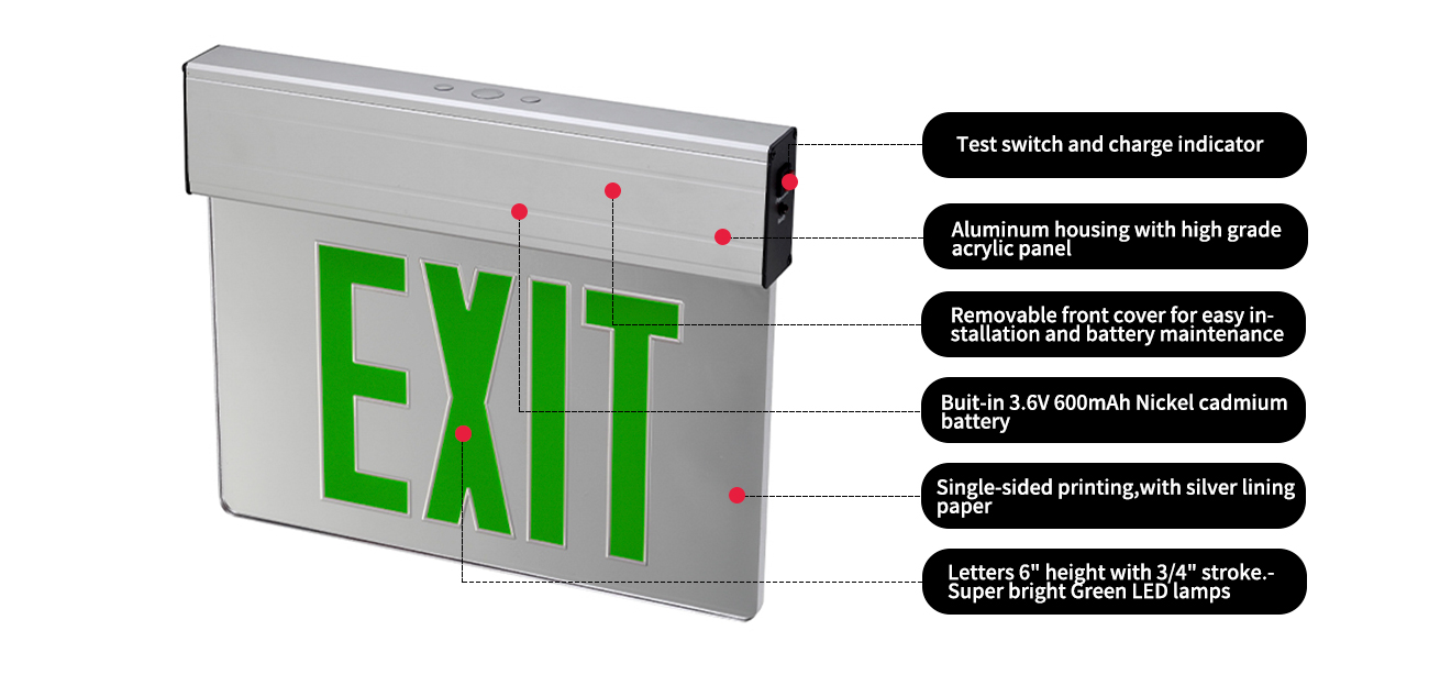 Enkelt ansikt 6 tommer 12 LED nødutgangsskilt