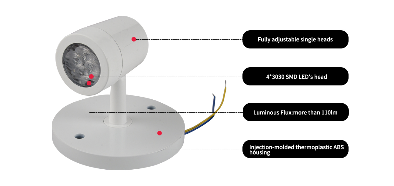 Hjem / Produkt / Nødlys / LED Emergency Light Remote Head / Cndrh1 -4*3030 SMD Innendørs enkelt fjernlampehode
